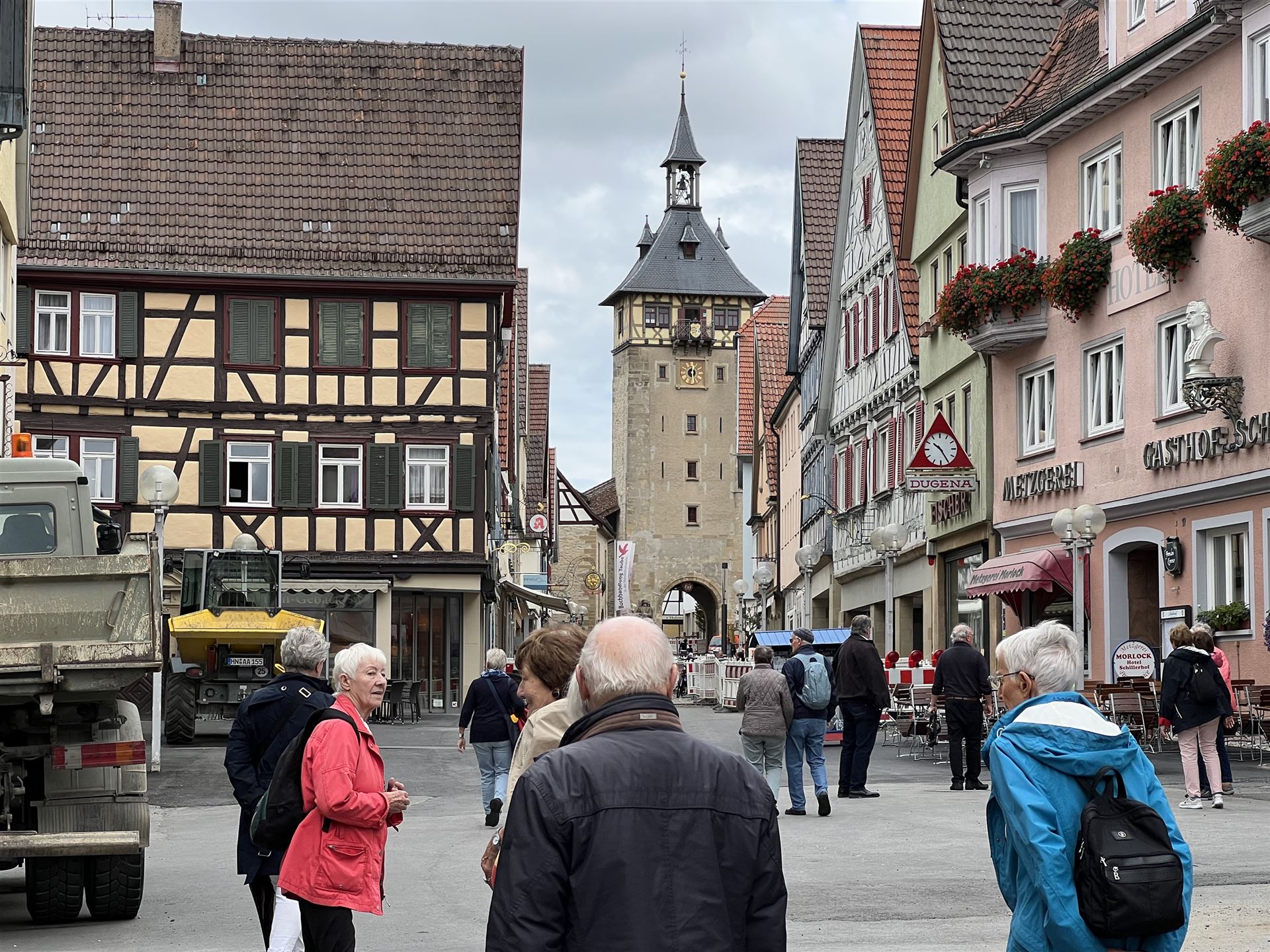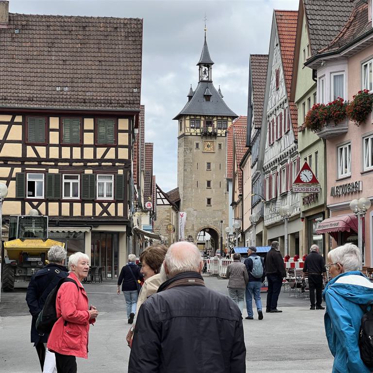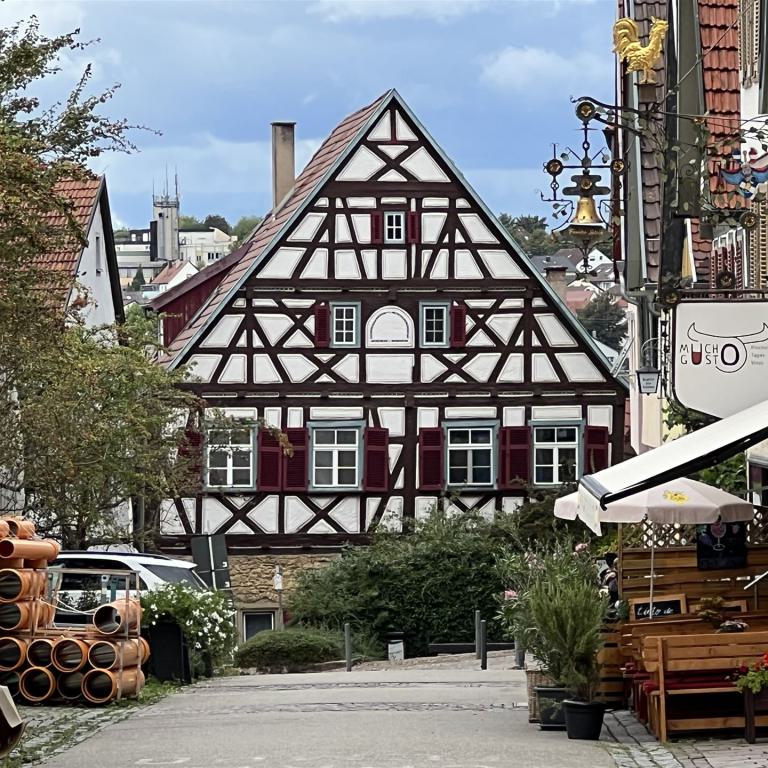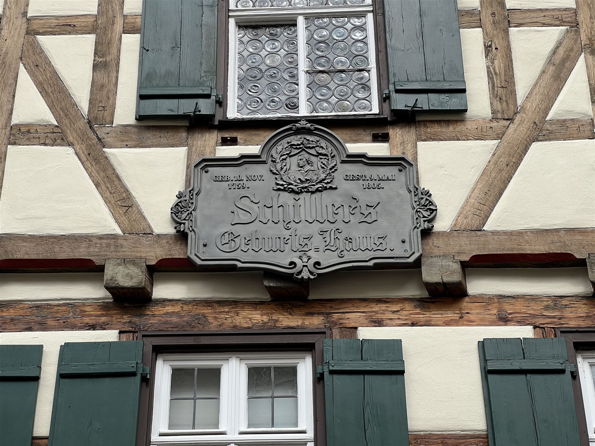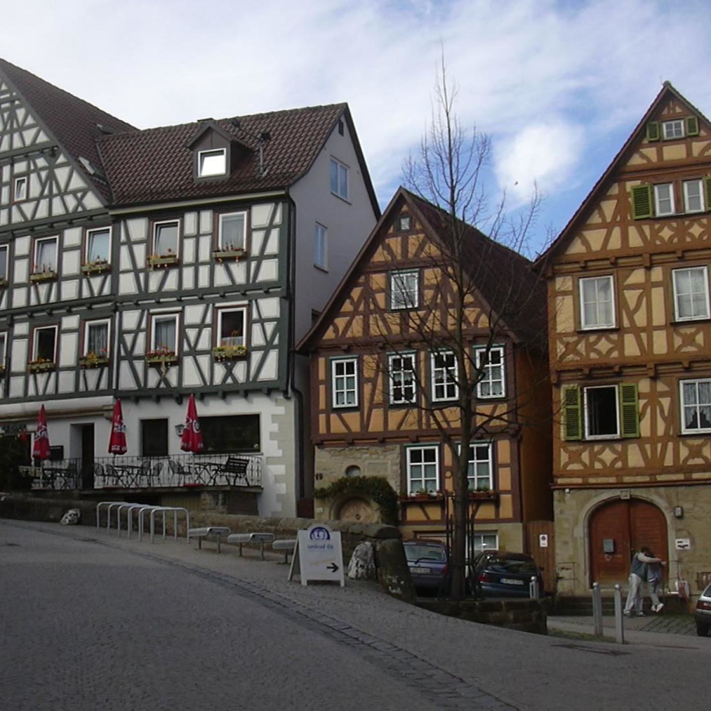Zahlreiche Fachwerkhäuser, Türme, Brunnen und Schillers Geburtshaus prägen die an drei Seiten mit einer Stadtmauer umgebene malerische Altstadt, die insgesamt ein geschlossenes Ensemble an Bauten aus dem 18. Jahrhundert aufweist.