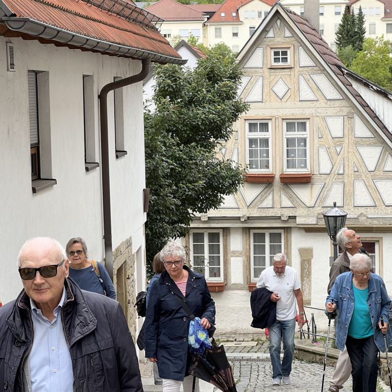 Anschließend besichtigen wir mit Führung die Altstadt und werden nach einer ausgedehnten Pause am Nachmittag durch das Literaturmuseum der Moderne auf der „Schillerhöhe“ geführt. Der Bau wurde vom Stararchitekten David Chipperfield entworfen und 2006 eröffnet.