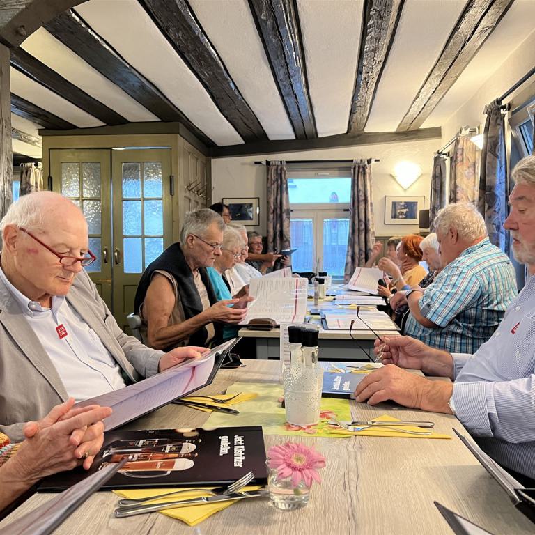 In der Marbacher Traditionsgaststätte „Ochsen“ lassen wir mit schwäbischer Küche und württembergischen Wein die Exkursion ausklingen.